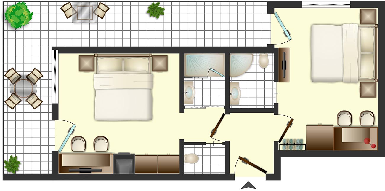 Das Familienzimmer Clematis wurde so gestaltet, dass es viel Privatsphäre bietet: Beide Zimmer sind nicht nur durch einen Gang voneinander abgetrennt, sondern verfügen auch über jeweils ein eigenes Badezimmer und einen Flatscreen-TV. Besonders Familien mit älteren Kindern oder befreundete Paare schätzen diese Aufteilung. Über einen gemeinsamen Vorraum gelangst du in die separaten Zimmer. Jedes Badezimmer ist mit einer entspannenden Regendusche, Shampoo, Seife, Haartrockner und WC ausgestattet. Natürlich gibt es auch schnellen WLAN-Empfang. Beide Zimmer bieten einen großzügigen Balkon mit atemberaubendem Blick auf die Gargellner Bergwelt. So kannst du zusammen sein, aber gleichzeitig auch die nötige Privatsphäre genießen – genau das macht das Familienzimmer Clematis so besonders.