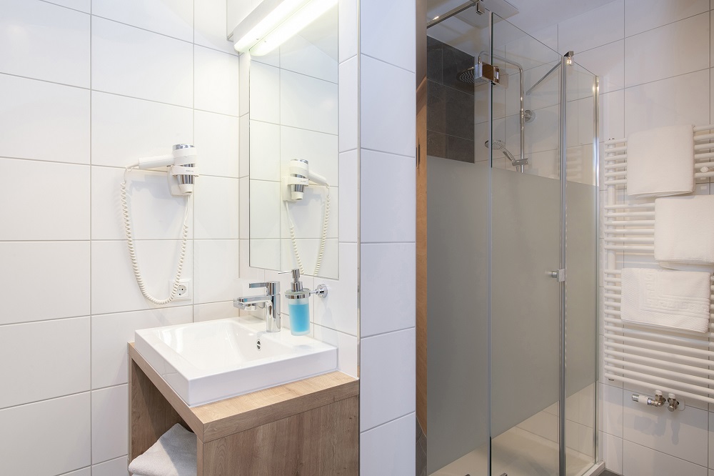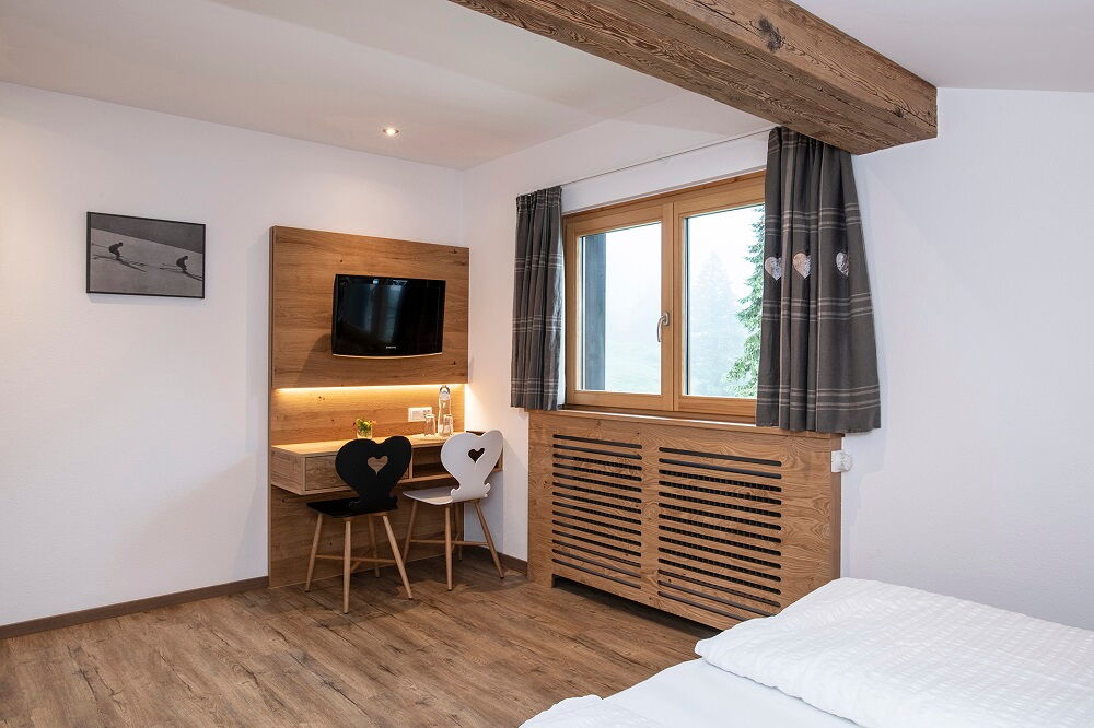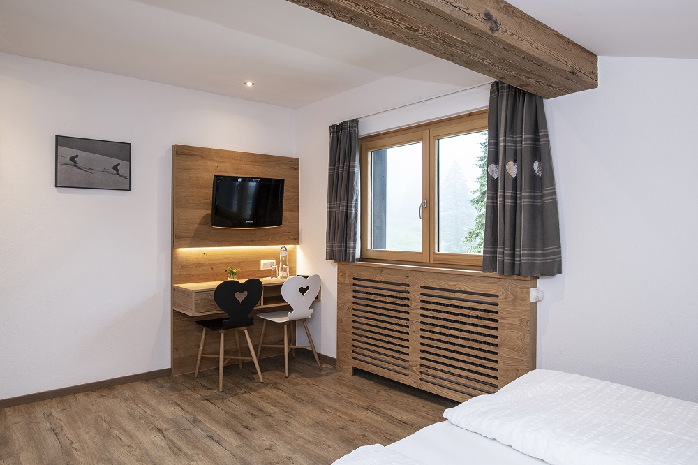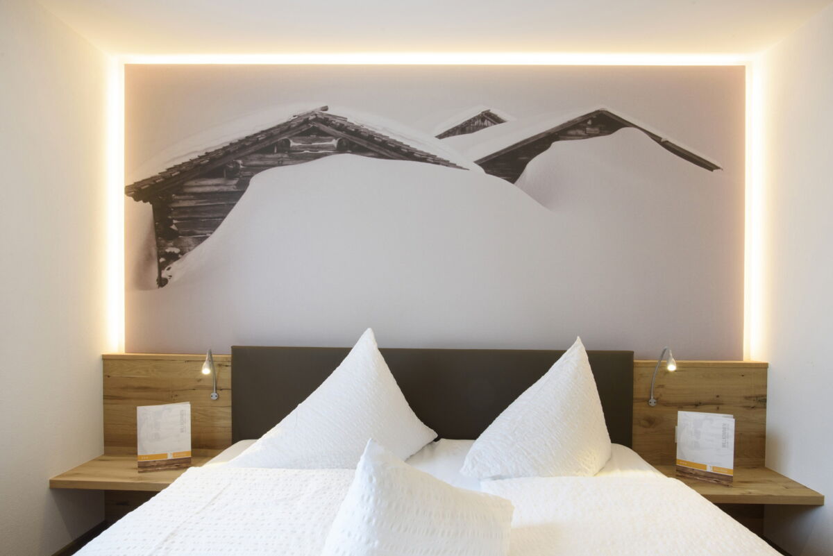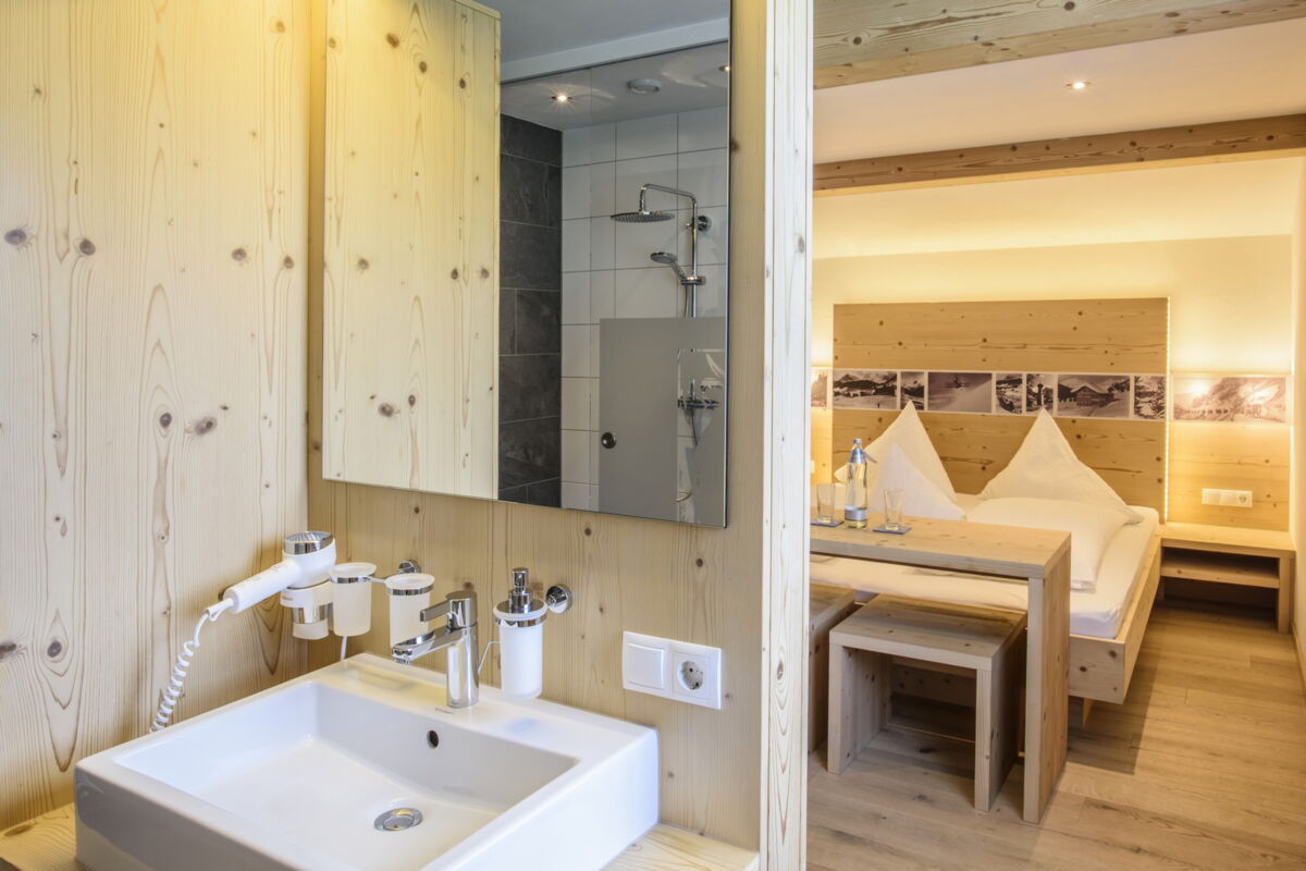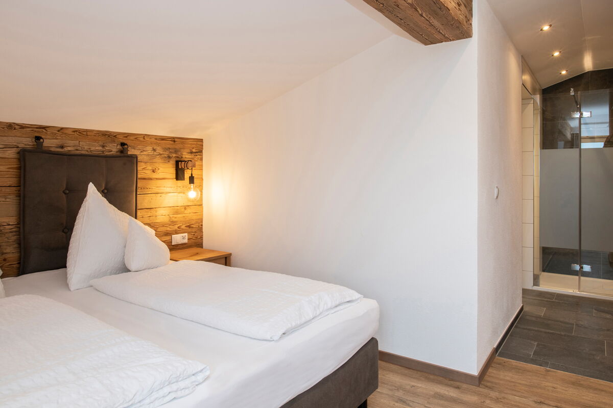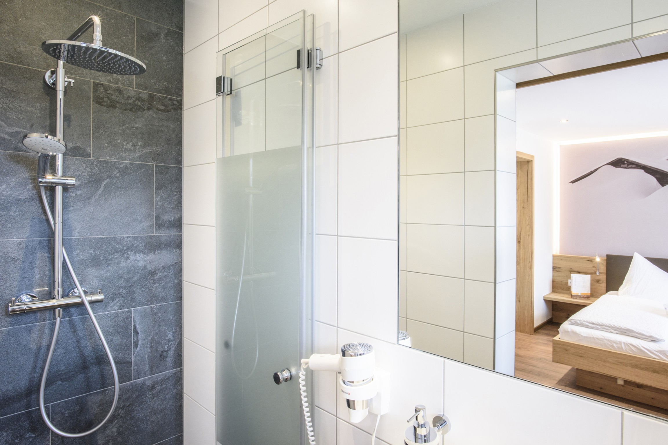 Die Doppelzimmer Eisenhut wurden bei der Renovierung mit viel Liebe zum Detail gestaltet – jedes Zimmer ist einzigartig und besonders. Holz und Licht verleihen den Eisenhut-Zimmern ihren charmanten Charakter, während die ruhigen Farbtöne eine harmonische Atmosphäre schaffen. Die großen Betten mit hochwertigen Matratzen garantieren erholsame Nächte, sodass du frisch und ausgeschlafen in den Tag starten kannst. Die Regenduschen im Badezimmer sind ein echtes Highlight, und natürlich fehlen auch Shampoo, Seife und Haartrockner nicht. Große Fenster bieten einen atemberaubenden Blick auf die umliegenden Berge. Jedes Eisenhut-Zimmer ist für 2 Personen ausgelegt und ausgestattet mit einem Flatscreen-TV sowie schnellem WLAN, sodass du auch in den Bergen bestens vernetzt bleibst.
