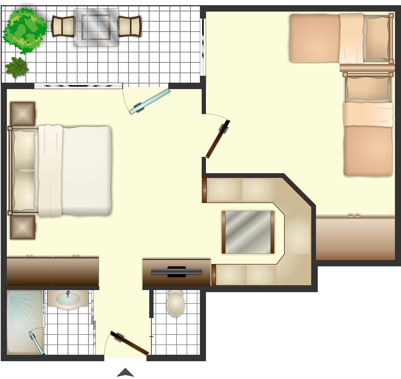 Das Familienzimmer Enzian bietet Platz für bis zu 5 Personen und sorgt mit zwei separaten Schlafbereichen und einer Verbindungstür für ruhige Nächte. Die großen Betten mit hochwertigen Matratzen garantieren, dass sich die ganze Familie bestens erholen kann, um für den nächsten Tag in Gargellen fit zu sein. Die gemütlichen Sitzecken eignen sich perfekt für Familienspiele oder andere Aktivitäten, wenn alle noch wach sind. Vom Balkon aus hast du einen beeindruckenden Blick auf die Berge, und im Badezimmer erwartet dich eine großzügige Regendusche. Zudem gibt es einen Haartrockner, Shampoo und Seife. Besonders praktisch für Familien: Die Toilette ist vom Bad getrennt. Natürlich ist auch ein Flatscreen-TV und schneller WLAN-Empfang vorhanden, damit du immer bestens unterhalten und vernetzt bist.