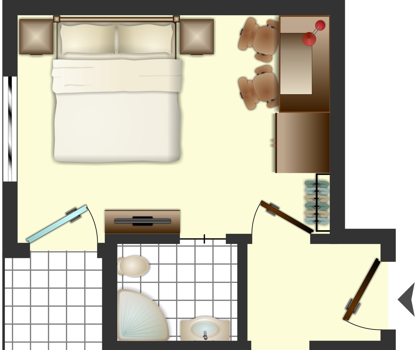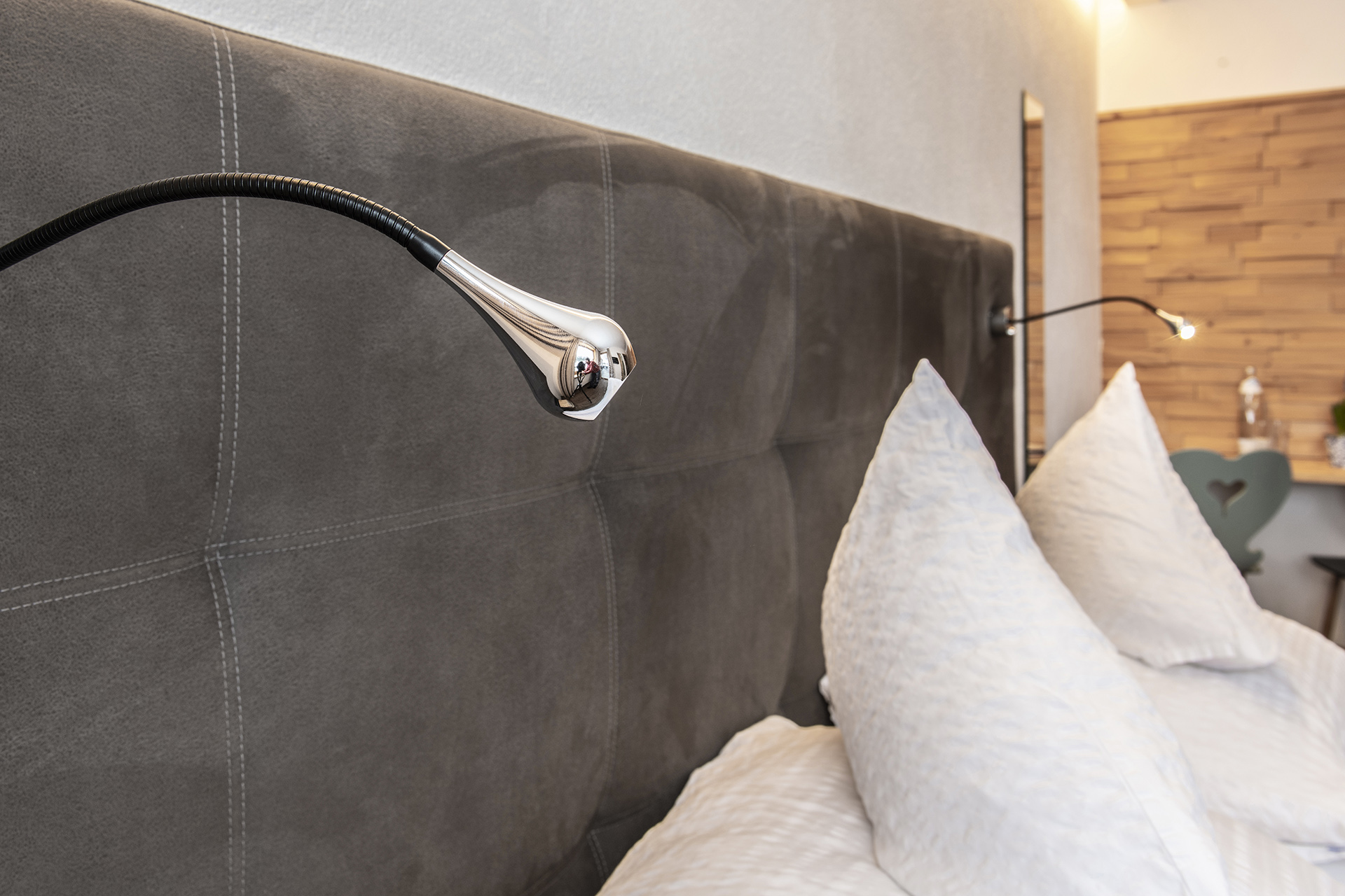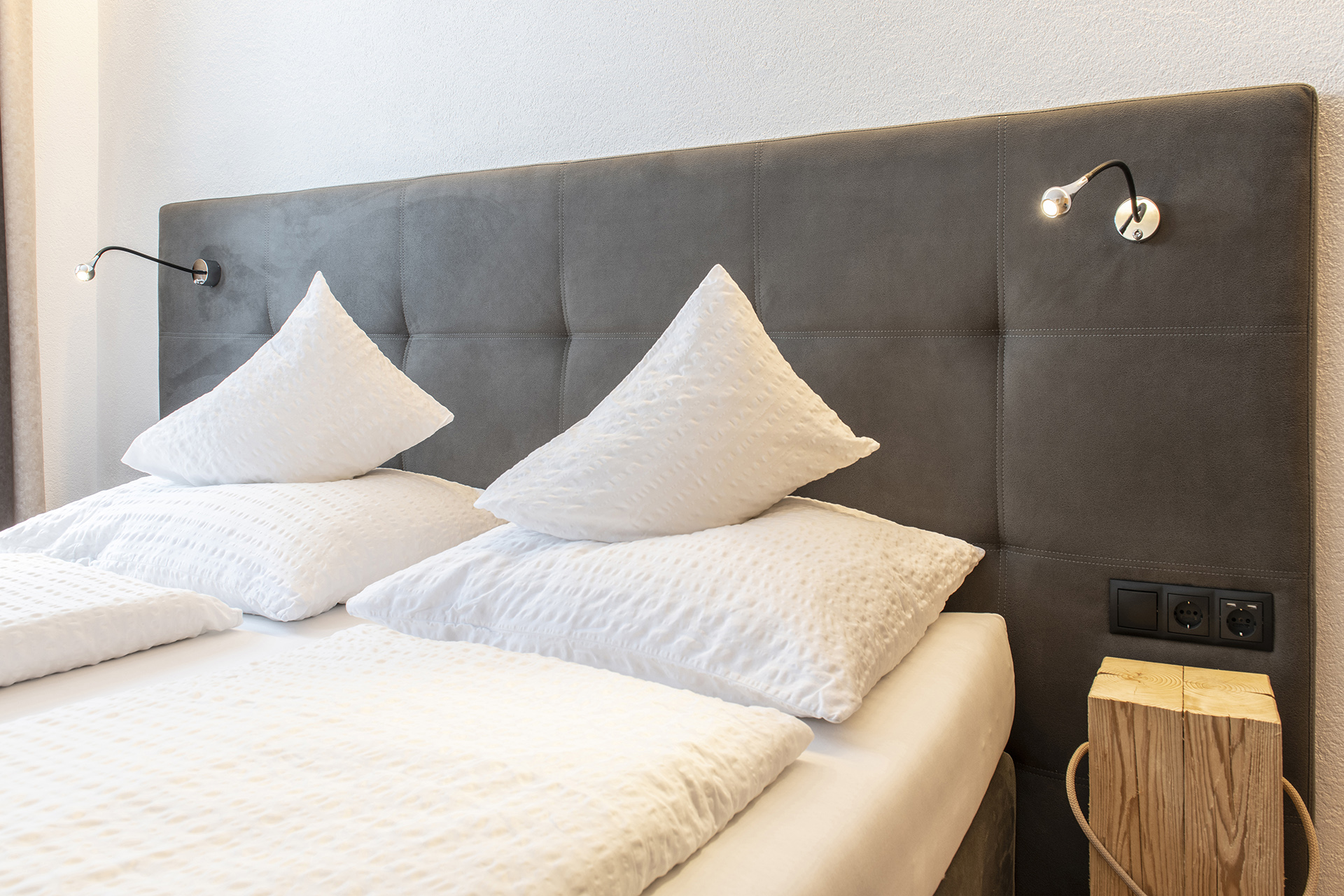 Du bevorzugst es schlicht, aber trotzdem gemütlich? Dann ist unser Zimmer 6 genau das Richtige für dich. Es bietet entweder ein Doppelbett oder zwei Einzelbetten, einen Schreibtisch und einen Schrank. Das Badezimmer ist kompakt, aber ausgestattet mit einer erfrischenden Regendusche, Shampoo, Seife, Haartrockner und WC. Ein Balkon mit herrlichem Bergblick sorgt für das besondere Extra. Und natürlich gibt es auch einen schnellen WLAN-Empfang.