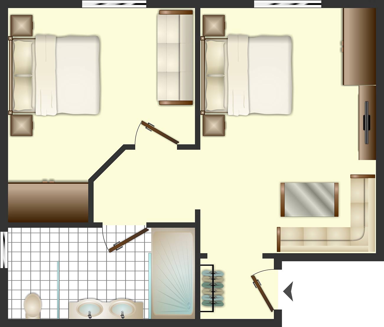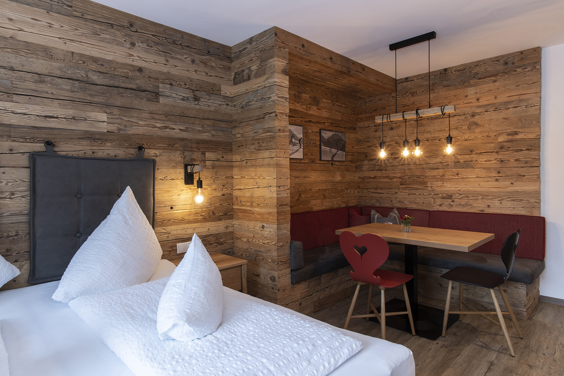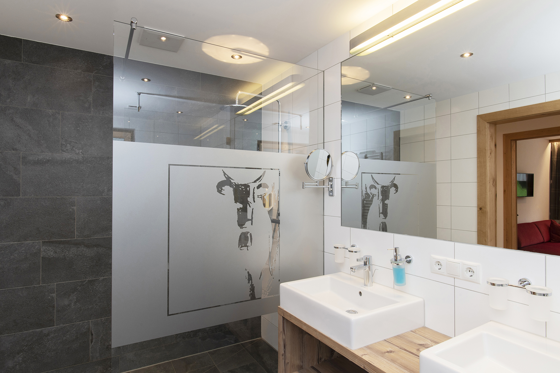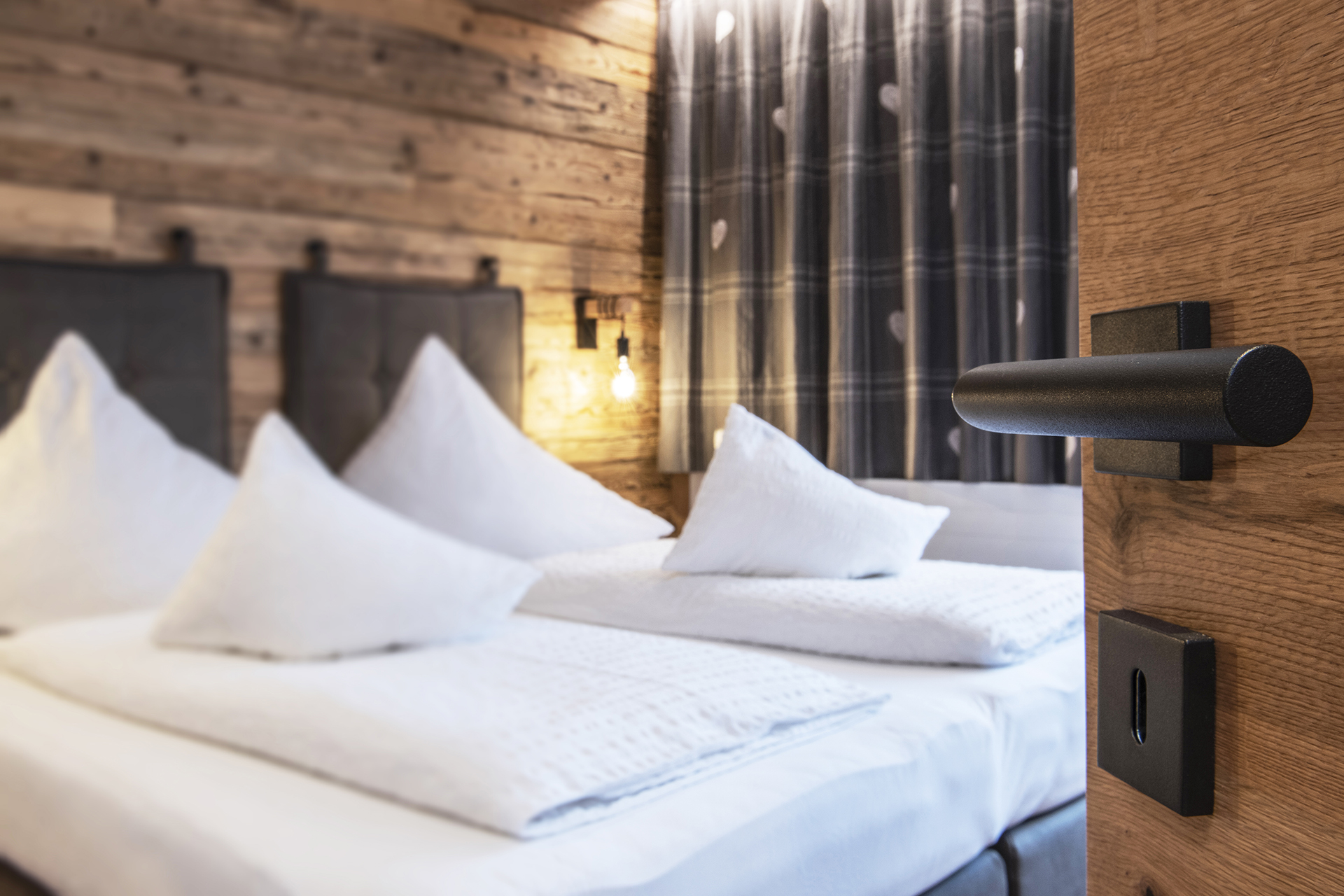 Die Familiensuite Wulfenia besticht durch ihre Einzigartigkeit. Hier trifft Komfort auf Stil – eine perfekte Mischung aus Schönheit und Funktionalität. Die großzügige Suite bietet Platz für bis zu 5 Personen und sorgt mit zwei getrennten Schlafbereichen und einer Verbindungstür dafür, dass jeder seinen erholsamen Schlaf findet. Die großen Betten mit hochwertigen Matratzen garantieren besten Komfort. Beide Zimmer sind mit Flatscreen-TVs ausgestattet, und die gemütliche Lounge-Ecke ist der perfekte Treffpunkt für die ganze Familie. Das Badezimmer bietet zusätzlich zur Walk-in Dusche mit Regenbrause zwei Waschbecken, Haartrockner, Shampoo und Seife sowie ausreichend Ablagefläche für alle. Die Suite liegt südseitig, und durch die großen Fenster genießt man einen atemberaubenden Blick auf die umliegende Bergwelt. Der schnelle WLAN-Empfang rundet den Aufenthalt ab – hier ist für alles gesorgt.